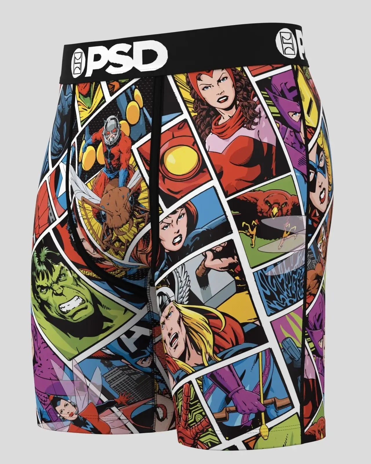 Featuring a retro comic strip, this Marvel comics boxers design includes images of beloved characters from the comic books like Dr. Strange and Ant-Man. With four-way stretch, a breathable MicroMesh pouch, and durable flatlock stitching, these Marvel comic boxer briefs were built to hold up for everything from everyday wear to the toughest workouts.