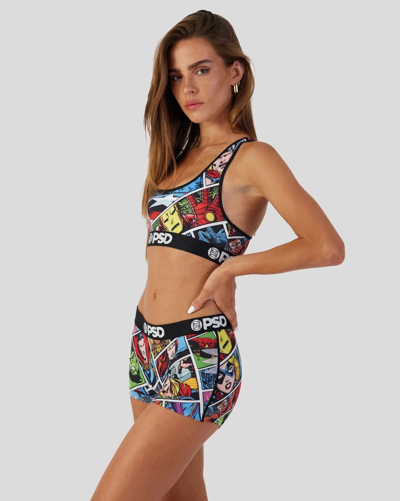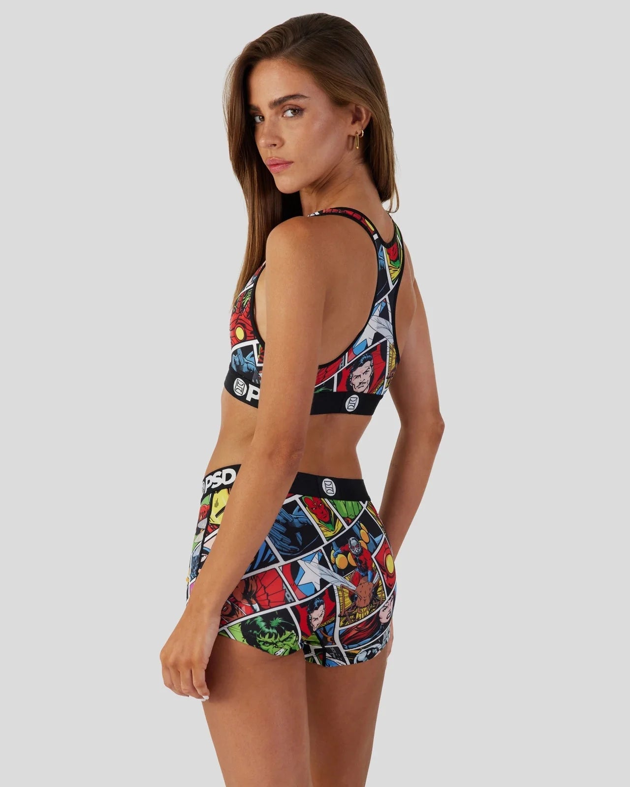 Featuring a retro comic strip, this Marvel Comics Underwear design includes beloved characters from the books like Dr. Strange, the Incredible Hulk, and Ant-Man. Made with our silky poly blend, the Boy Short is breathable yet slightly compressive, bringing you the comfort and support you need for everything you get into.
