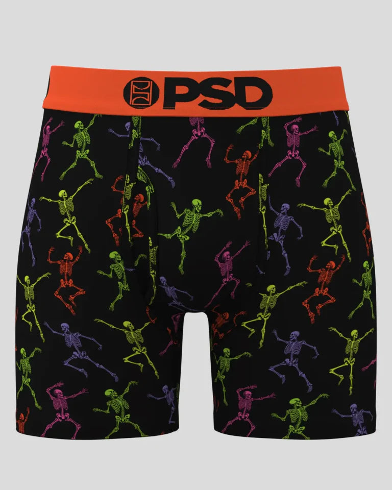 Turn up the fright in full color. This glow-in-the-dark style packs the dance floor with skeletons in electric neon hues—grooving, twisting, and bringing the undead energy. The Skeleton Dance Modal briefs are made of a super soft modal blend. They're built for everyday wear, especially when looking for a more traditional, less silky underwear feel.