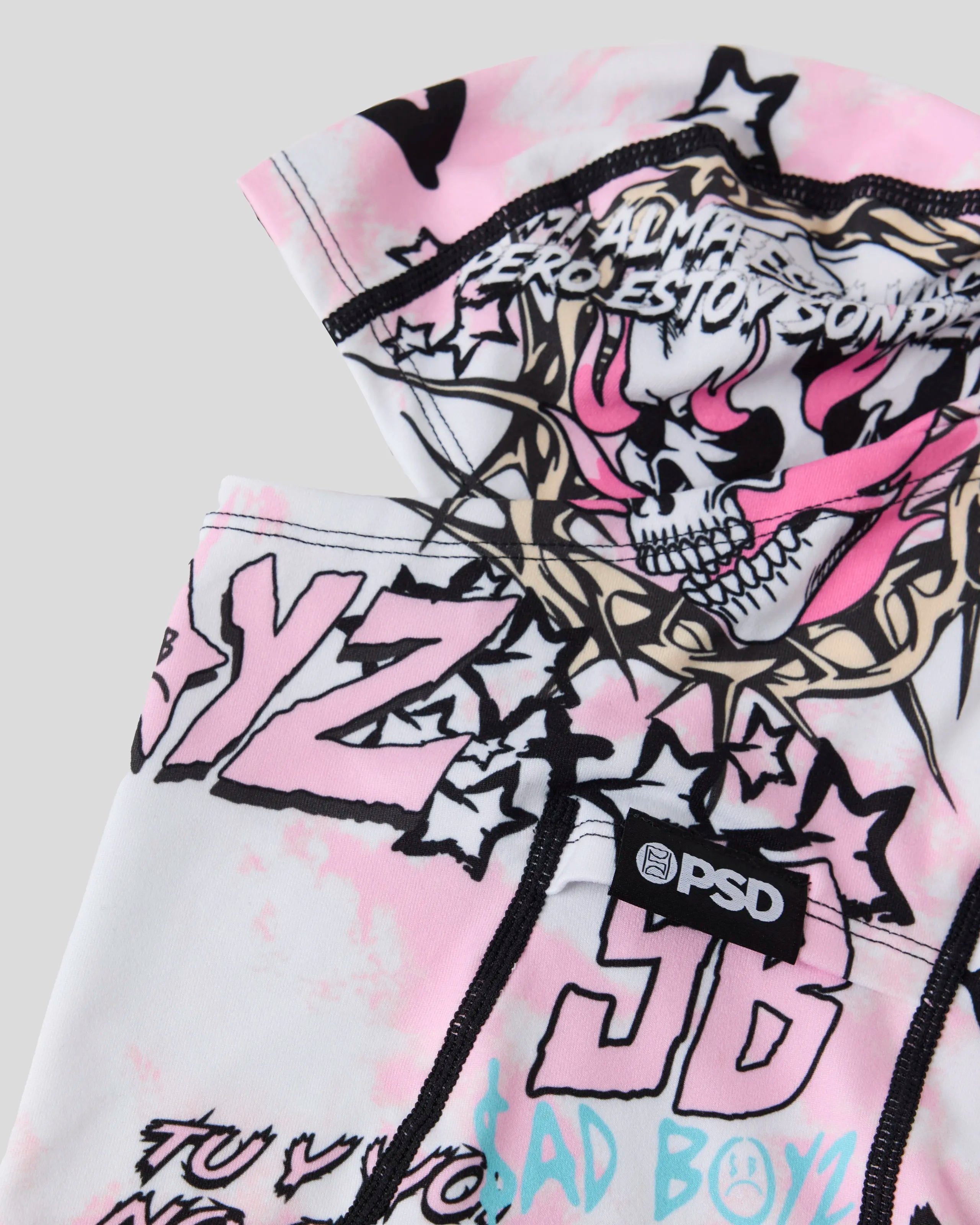 The Infierno Hooded Mask from Sad Boyz x PSD pairs street style with cold-weather comfort. Made of a breathable poly blend brushed on the inside for an extra soft feel on the face, the mask has flat seams and can also be worn as a neck gaiter.